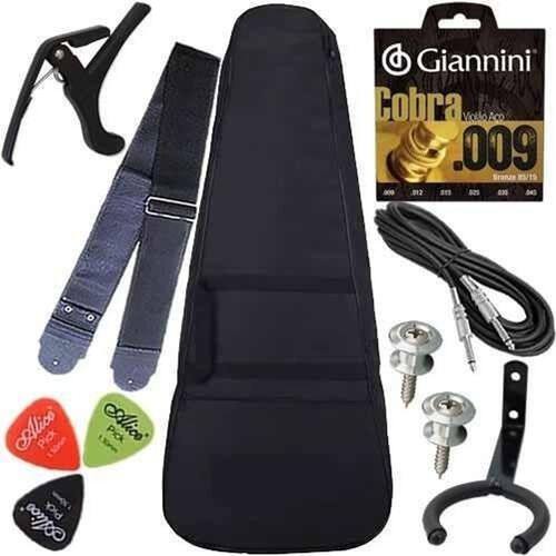 Kit capa violão nylon acolchoada multi acessórios completo carbon Você músico, experiente ou iniciante, com certeza não quer machucar seu instrumento, muito menos quer que aqueles riscos indesejáveis aparecem na madeira do seu violão . Por isso nós da constelação trouxemos para você esta capa acolchoada, ultra resistente, ideal para proteger seu instrumento de batidas, quedas... Além disso esta capa possui alças laterais e tiracolo, para você carregar na mão. E ainda mais, ela conta com uma bolsa externa para você carregar seus acessórios. É ideal para músicos que precisam se locomover com o instrumento. Este modelo possui o desenho perfeito para seu violão folk Características capa acolchoada - modelo: violão folk - cor: preta - material: nylon 600 - aplicação: violão folk - bolso externo - acabamento inter em nylon preto - espuma interna para maior proteção - alça tipo mochila - alça de mão - bolso externo para acessórios A correia acolchoada jpg é feita de nylon 600, um material resistente para aguentar a rotina de um músico. Possui ponteiras de couro que além de fixar melhor na roldana, ainda dá a flexibilidade necessária para uma performançe de palco incrível. Características correia - para guitarras, baixos, contra-baixos, violão, viola, etc. - modelo acolchoado - nylon 600 impermeável ultra-resistente - ponteiras de couro O capotraste para o músico que toca violão ou guitarra é essencial para uma mudança de tom na canção. Pensando nisso, apresenta seu capotraste com design moderno, que se adapta confortavelmente ao instrumento sem a necessidade de ajustes. Além disso, o capotraste pode ser utilizado em qualquer traste do instrumento, é pequeno, discreto, conveniente e portátil, podendo ser trocado com bastante facilidade. Simples e eficiente, faz o que um capotraste precisa fazer: segura as cordas com exatidão mantendo a afinação. Características capotraste - braçadeira com mola - regulador de tensão para violão de aço e guitarra - permite ajuste preciso sobre o braço de acordo com a espessura das cordas. Itens inclusos - capa violão acolchoada - palhetas - capotraste - cabo p10/p10 - correia - suporte para violão - par de roldana - encordoamento
