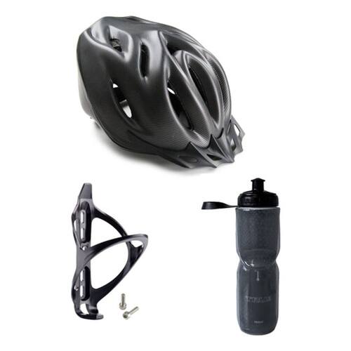 Kit Ciclismo True – Capacete Adulto Preto Carbono + Garrafa Térmica 700ml + Suporte com Parafusos
