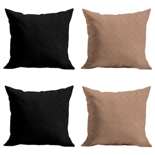 O kit de capas de almofada apresentam um acabamento na frente em relevo feito de courino, enquanto sua parte de trás se assemelha com um veludo, conferindo uma textura refinada e um visual moderno e acolhedor. Ideal para ambientes contemporâneos, minimalistas ou até mesmo clássicos, ela se adapta facilmente a diferentes espaços, como salas, quartos, escritórios e áreas de recepção.