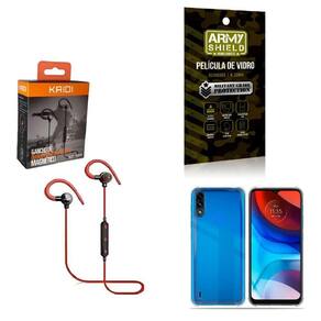 Kit Capinha Moto E7 Power Fone Bluetooth E Película Vidro 3D