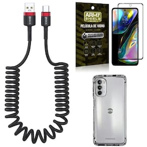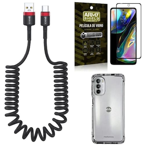 Cabo espiral + capinha anti impacto + película vidro 3d - armyshield