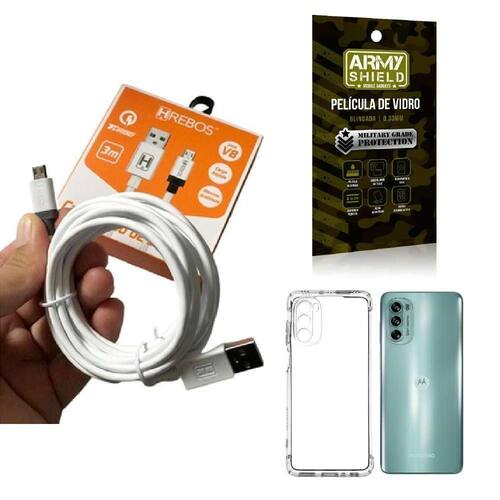 Kit capinha motorola g62 com cabo turbo e película de vidro