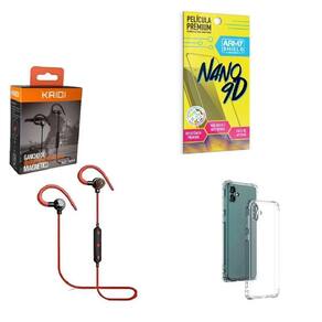 Kit Capinha Samsung A04 Fone Bluetooth E Película 9D