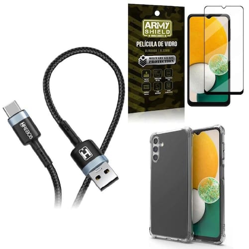 Cabo usb tipo c hs-302 + capinha + película vidro 3d - armyshield