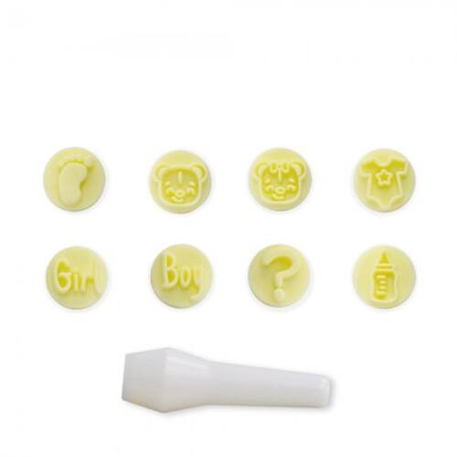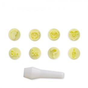 Kit carimbos baby (1,5cm). São oito opções de carimbos perfeitos para decorações de chá de bebê e revelação, acompanha um cabo que encaixa e facilita no momento de utilizar. Aplique de forma rápida e prática em seus doces, experimente carimbar com pó ou glitter e destaque ainda mais os desenhos. Eleve o nível de seus trabalhos, lembrancinhas, decorações e surpreenda seus clientes!