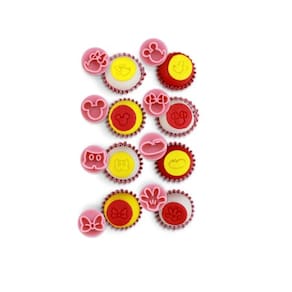 Kit carimbos ratinhos (1,50cm). São oito opções de carimbos para tornar suas decorações mais divertidas com os ratinhos mais amados Mickey e Minnie, acompanha um cabo que encaixa e facilita no momento de utilizar. Aplique de forma rápida e prática em seus doces, experimente carimbar com pó ou glitter e destaque ainda mais os desenhos. Eleve o nível de seus trabalhos, lembrancinhas, decorações e surpreenda seus clientes!