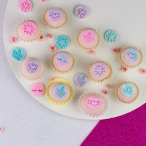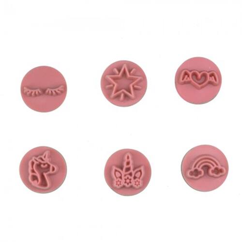 Kit carimbos unicórnio (2cm). São seis opções de carimbos para tornar suas decorações encantadoras, acompanha um cabo que encaixa e facilita no momento de utilizar. Aplique de forma rápida e prática em seus doces, experimente carimbar com pó ou glitter e destaque ainda mais os desenhos. Eleve o nível de seus trabalhos, lembrancinhas, decorações e surpreenda seus clientes!