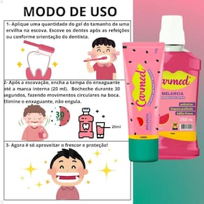 Uso supervisionado: Crianças de até 6 anos devem usar o gel dental e o enxaguante sob a supervisão de um adulto para evitar a ingestão excessiva do produto.