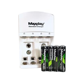 Pilhas: Pilhas de Niquel 1.2v AA Recarregáveis Características: Led vermelho indicando o processo de carga Input: AC100-240V 50/60Hz. Carrega 4 pilhas AA Ou 4 pilhas AAA Ou 2 bateria 9v Pilhas Recarregáveis Ni-MH 2800mAh 1.2v