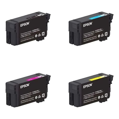 Cartucho de Tinta Epson T40W (VERSÃO XL - DOBRO DE TINTA) kit com 4 cores para utilização em Plotter SureColor T3170, T3170M, T5170. Imprime na cor preta com excelente qualidade, com tinta pigmentada e tecnologia UltraChrome XD2 de última geração, oferece impressões duradouras, com cores brilhantes e contornos nítidos.