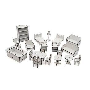 Confeccionada em mdf de 3 mm,a casinha de bonecas é composta por diversas peças,as quais se encaixam sutilmente devido a precisão de corte dos mesmos. acompanha kit de móveis