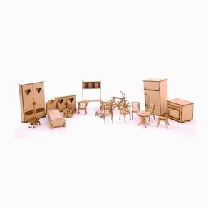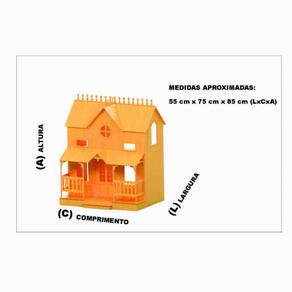 Confeccionada em mdf de 3 mm,a casinha de bonecas é compostapor diversas peças,as quais se encaixam sutilmente devido a precisãode cortedos mesmos. Moveis inclusos.