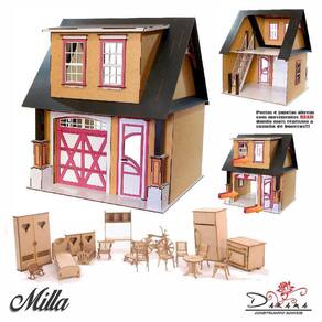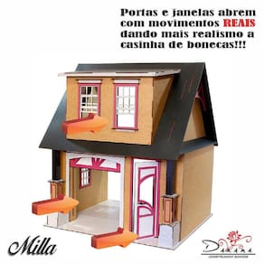 Casa de bonecas modelo milla - daramaUm dos nossos lançamentos de 2022, a casa de bonecas milla, tras um conceito mais compacto para casinhas de escala para bonecas de 30 cm de altura, ideal para pequenos espaços.A casa modelo milla possui dimensão total de 60 cm de comprimentos por 56 centimetros de profundidade, e 70 centimetros de altura, comportando bonecas de até 30 cm de altura como as da linha barbie e similares.Ela é composta por 2 cômodos amplos, sendo ambos de 35 cm de altura. Possui ainda uma varanda na parte frontal com espaçamento de 10 cm, ideal para que sua boneca possa circular tranquilamente na parte interna.As janelas e portas deste modelo são móveis, ou seja, as janelas e as portinhas abrem e fecham, dando mais realismo ao produto.Todo o produto é enviado desmontado, e para sua montagem disponibilizamos um manual ilustrativo. A montagem é feita através de encaixes e colagem precisa seguir o tutorial de montagem sendo um desafio para toda a família a construção desta linda casinha.A casinha milla está sendo comercializada em diversas versões, tanto coloridas, como em mdf natural.Características:Medidas: 60 x 56 x 70 centimetros largura x comprimento x altura Compatibilidade: bonecas de 30cm de altura tipo barbie e similares Obs imagens reais do produto.Itens do kit de móveis :Cozinha : cadeiras,mesa, fogão, geladeiraSala : 3 poltronas,mesa de centro, estanteQuarto do bebê : cadeira de balanço, berçoQuarto : cama, cômoda,guarda roupasVeículo : bicicleta-01Homologação Inmetro: IP-BRI-1544/2021-01 Marca: Indústria Fenix
