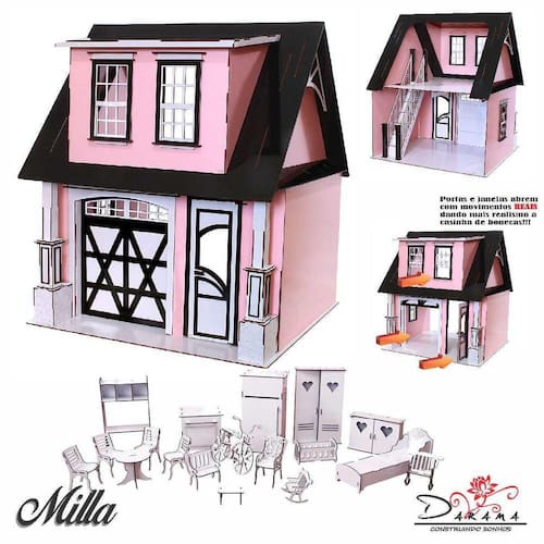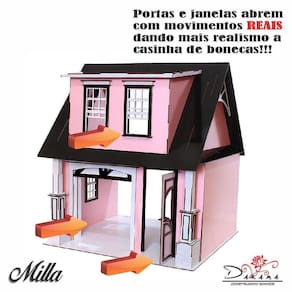 Casa de bonecas modelo milla - darama Um dos nossos lançamentos de 2022, a casa de bonecas milla, tras um conceito mais compacto para casinhas de escala para bonecas de 30 cm de altura, ideal para pequenos espaços. A casa modelo milla possui dimensão total de 60 cm de comprimentos por 56 centimetros de profundidade, e 70 centimetros de altura, comportando bonecas de até 30 cm de altura como as da linha barbie e similares. Ela é composta por 2 cômodos amplos, sendo ambos de 35 cm de altura. Possui ainda uma varanda na parte frontal com espaçamento de 10 cm, ideal para que sua boneca possa circular tranquilamente na parte interna. As janelas e portas deste modelo são móveis, ou seja, as janelas e as portinhas abrem e fecham, dando mais realismo ao produto. Todo o produto é enviado desmontado, e para sua montagem disponibilizamos um manual ilustrativo. A montagem é feita através de encaixes e colagem precisa seguir o tutorial de montagem sendo um desafio para toda a família a construção desta linda casinha. A casinha milla está sendo comercializada em diversas versões, tanto coloridas, como em mdf natural.
