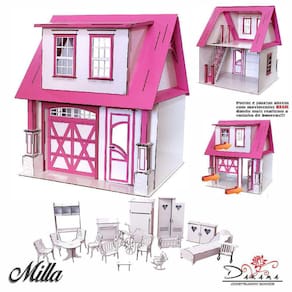 Casa de bonecas modelo milla - darama Um dos nossos lançamentos de 2022, a casa de bonecas milla, tras um conceito mais compacto para casinhas de escala para bonecas de 30 cm de altura, ideal para pequenos espaços. A casa modelo milla possui dimensão total de 60 cm de comprimentos por 56 centimetros de profundidade, e 70 centimetros de altura, comportando bonecas de até 30 cm de altura como as da linha barbie e similares. Ela é composta por 2 cômodos amplos, sendo ambos de 35 cm de altura. Possui ainda uma varanda na parte frontal com espaçamento de 10 cm, ideal para que sua boneca possa circular tranquilamente na parte interna. As janelas e portas deste modelo são móveis, ou seja, as janelas e as portinhas abrem e fecham, dando mais realismo ao produto. Todo o produto é enviado desmontado, e para sua montagem disponibilizamos um manual ilustrativo. A montagem é feita através de encaixes e colagem precisa seguir o tutorial de montagem sendo um desafio para toda a família a construção desta linda casinha. A casinha milla está sendo comercializada em diversas versões, tanto coloridas, como em mdf natural.