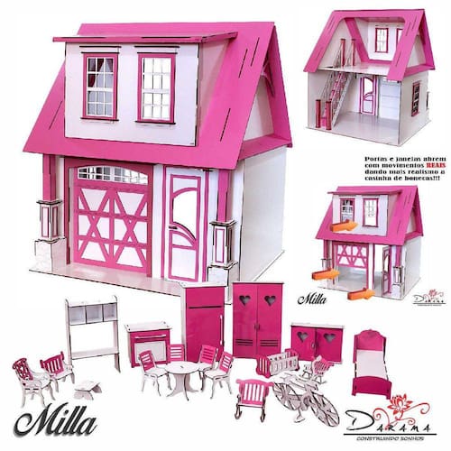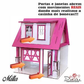 Casa de bonecas modelo milla - darama Um dos nossos lançamentos de 2022, a casa de bonecas milla, tras um conceito mais compacto para casinhas de escala para bonecas de 30 cm de altura, ideal para pequenos espaços. A casa modelo milla possui dimensão total de 60 cm de comprimentos por 56 centimetros de profundidade, e 70 centimetros de altura, comportando bonecas de até 30 cm de altura como as da linha barbie e similares. Ela é composta por 2 cômodos amplos, sendo ambos de 35 cm de altura. Possui ainda uma varanda na parte frontal com espaçamento de 10 cm, ideal para que sua boneca possa circular tranquilamente na parte interna. As janelas e portas deste modelo são móveis, ou seja, as janelas e as portinhas abrem e fecham, dando mais realismo ao produto. Todo o produto é enviado desmontado, e para sua montagem disponibilizamos um manual ilustrativo. A montagem é feita através de encaixes e colagem precisa seguir o tutorial de montagem sendo um desafio para toda a família a construção desta linda casinha. A casinha milla está sendo comercializada em diversas versões, tanto coloridas, como em mdf natural.