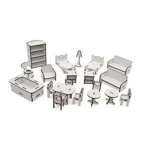 Confeccionada em mdf de 3 mm,a casinha de bonecas é composta por diversas peças,as quais se encaixam sutilmente devido a precisão de corte dos mesmos. acompanha kit de móveis