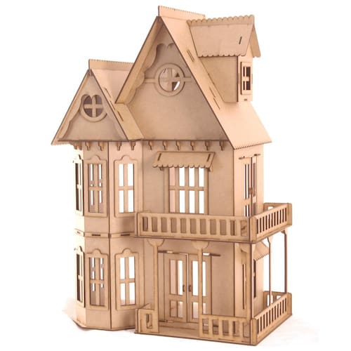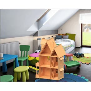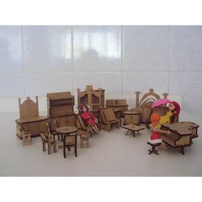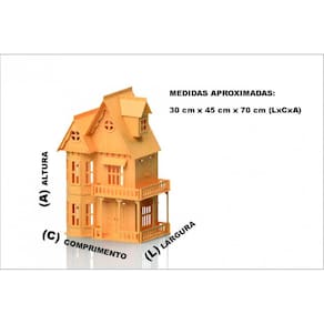 Confeccionada em mdf de 3 mm,a casinha de bonecas é compostapor diversas peças,as quais se encaixam sutilmente devido a precisão de cortedos mesmos. Acompanha móveis.
