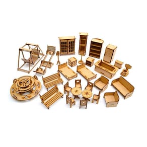 Confeccionada em mdf de 3 mm,a casinha de bonecas é composta por diversas peças,as quais se encaixam sutilmente devido a precisão de corte dos mesmos. acompanha kit de móveis