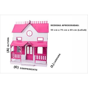 Confeccionada em mdf de 3 mm,a casinha de bonecas é compostapor diversas peças,as quais se encaixam sutilmente devido a precisãode cortedos mesmos. Moveis inclusos.