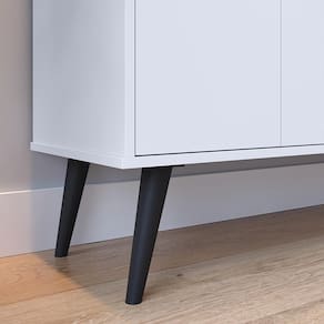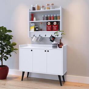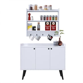Kit Casa Completa Aparador Buffet 3 Portas Pés Palito Wood New Armário Suspenso Prateleiras Ganchos Organizadores Amélia - Branco - RPM Móveis