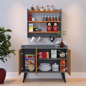 Pensando em uma combinação perfeita que une praticidade e estilo para aprimorar o seu espaço a Lojas RPM produziu o Kit composto pelo Aparador Wood New e Armário Suspenso Amélia.