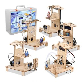 O kit 5-in-1 ESP32 Smart Home QE024 é um conjunto educativo de casa inteligente em madeira 3D que utiliza uma controladora ESP32 para montar cinco cenários funcionais de automação residencial: alimentador automático de pets, varal automático, controle de acesso, alarme de segurança e sistema de irrigação automática. As estruturas são formadas por peças de quebra-cabeça em madeira cortadas a laser, atóxicas e com superfície lisa, combinadas a componentes eletrônicos estáveis para criar modelos de estudo de mecânica, eletrônica básica e controle. O conteúdo didático inclui cerca de 90 minutos de materiais e 16 horas/aula por semestre, com e-books, apresentações e instruções passo a passo em PDF para apoiar aulas e projetos em turma.