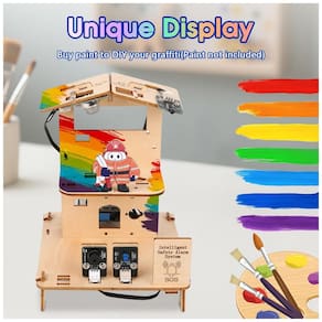 Conteúdo da caixa: Placa ESP32, peças de madeira recortadas para os cinco cenários, componentes eletrônicos, parafusos e acessórios de montagem