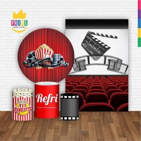 Kit casado cinema painel redondo trio capas cilindro retangular vertical em tecido Painel para decorações de festas de aniversário, pegue e monte, chá revelação, confraternização, painel sublimado, eventos e festas em geral, kit decoração festas,