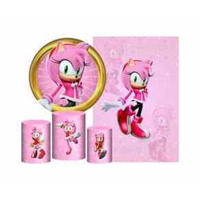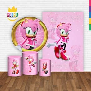 Kit casado sonic amy rose painel redondo trio capas cilindro retangular vertical em tecido Painel para decorações de festas de aniversário, pegue e monte, chá revelação, confraternização, painel sublimado, eventos e festas em geral, kit decoração festas,