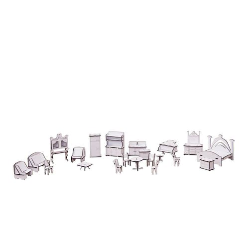 Confeccionada em mdf de 3 mm,a casinha de bonecas é compostapor diversas peças,as quais se encaixam sutilmente devido a precisão de cortedos mesmos. Acompanha móveis.