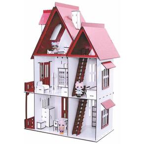 Confeccionada em mdf de 3 mm,a casinha de bonecas é compostapor diversas peças,as quais se encaixam sutilmente devido a precisão de cortedos mesmos. Acompanha móveis.