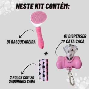 Kit Cata Caca Mosquetão Com Saquinhos + Rasqueadeira Cor: Rosa Seja Bem Vindo a Loja Oficial da Dog Cat Store.