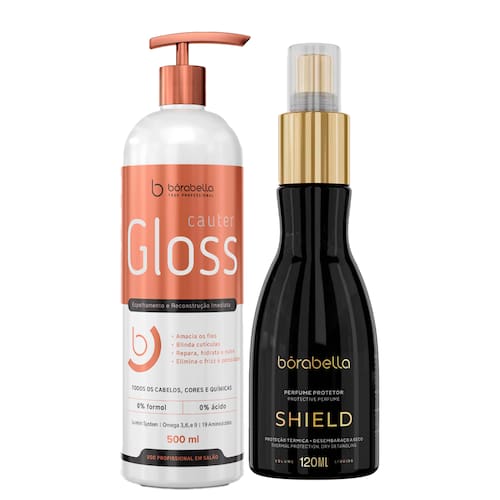 Bórabella CauterGloss Espelhamento Blindagem Cuticular 500mlO CauterGloss da Borabella conta com uma tecnologia inovadora de NanoCauterização de efeito imediato que transforma e revitaliza completamente os fios em uma só aplicação, sendo indicado para todo e qualquer tipo de cabelo ou situação, mas principalmente para aqueles fragilizados, saturados por químicas, ressecados, sem movimento e hidrofílicos. Além disso, o produto também é liberado para crianças, grávidas e lactantes, pois é totalmente livre de ativos agressivos ou química e no pH de 4.5.