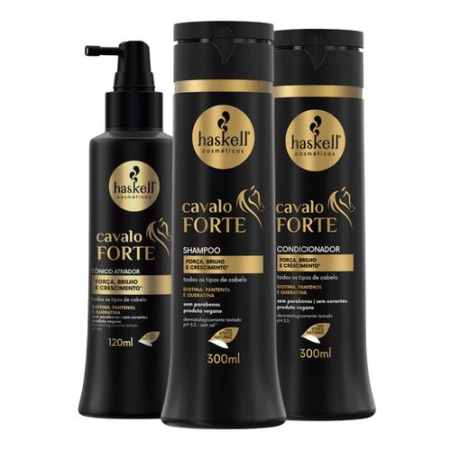 A linha Cavalo Forte foi desenvolvida para fortalecer e restaurar profundamente os fios, além de auxiliar no crescimento dos cabelos. Ela reconstrói, dá brilho intenso e reforça a estrutura interna dos fios.