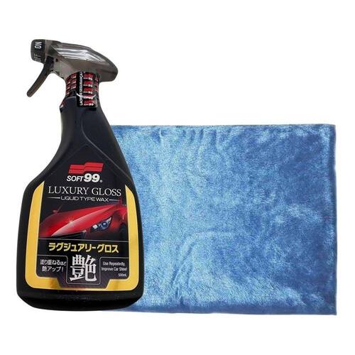 Cera Líquida Luxury Gloss é uma cera de carnaúba líquida para manutenção rápida (QUICK DETAIL). Por ser a base d'água pode ser utilizada para manutenção de veículos vitrificados, podendo também ser aplicado em todas as partes do veículo como vidros, plásticos, borracha, painel. Adequado também para veículos envelopados realçando a cor e prolongando a vida útil. A cera de carnaúba líquida resulta em brilho e proteção repelindo água e sujeira além de proteger contra os raios UVA e UVB. A Luxury Gloss apresenta um aroma de manga deixando seu veículo com um perfume agradável. A Cera ainda acompanha Toalha Lustro Pele De Raposa, desenvolvida especialmente no Japão para proporcionar 15% mais brilho devido a uniformidade gerada na superfície pelas micro tramas do tecido no ângulo correto. Aumenta consideravelmente o brilho em enceramentos. Remove o excesso de ceras ou selantes de forma uniforme. Não provoca choque eletrostático (evita que a poeira grude nas primeiras horas após o lustro). Pode ser utilizada também para lustrar vidros. Garanta já!Especificações Técnicas:Cera Liquida Spray Carro E Moto Carnauba Luxury Gloss Soft99• Nome: Cera Líquida Luxury Gloss• Fabricante: Soft99• Peso: 500ml• Textura: líquida• Rendimento: até 15 carros• Tipo de Brilho: Molhado• Nível de Brilho: 8• Nível de Repelência: 8• Nível de Proteção: 6• Conteúdo: 500ml• Durabilidade: até 2 mesesToalha Lustro De Cera Beauty Cloth Pele De Raposa• Tecido Especial Japonês que Proporciona Brilho Extraordinário na Lataria do Veículo• Aumenta Consideravelmente o Brilho em Enceramentos pois Remove o Excesso de Ceras ou Selantes de Forma Uniforme• Não Provoca Choque Eletrostático (Evita que a Poeira Grude nas Primeiras Horas Após o Lustro)• Pode ser Utilizada Para Lustrar Vidros.Aplicação:1- Deslize a toalha em apenas um sentido, não se deve utilizar em movimentos circulares nem vai e vem.2- Passe sobre a lataria sem fazer muita pressão para um melhor resultado.3- Após o uso lavar e secar bem a toalha em um local bem arejado.4- Após seco segure as extremidades da toalha e abane algumas vezes, pois ajudará os fios a se levantarem devolvendo a macies da microfibraConteúdo da Embalagem:• 01 Cera Líquida Luxury Gloss Soft 99• 01 Toalha de Lustro Beauty Cloth Raion Pele de RaposaImportante:• Garantia de 90 Dias.• Valor do Kit.