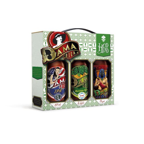 Kit Cervejas Dama Bier 600Ml - Ipa / Tupi / American Lager Kit Hop Head - com o Trio de Cervejas Clássicas Lupuladas da Dama Bier. Neste Kit você encontrará: 01 uma garrafa de Dama American Lager 600 ml - IBU 25 / Alc: 4,5% 01 uma garrafa da Tupi 600 ml - West Coast Rye IPA - IBU 70 / alc: 7,5% 01 uma garrafa da Ipa 600Ml. - IBU: 55 / Alc: 6,5%