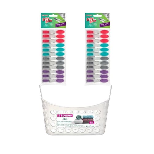 Kit com 1 Cesto de 1,6L + 24 Prendedores Para Roupas Esfrebom Bettanin Emborrachado