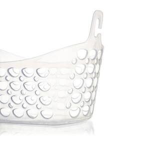 Cesto para prendedores com design clássico, flexível e inteligente. Observe o detalhe: cada alça fica virada para um lado, assim, nos ambientes externos e com muito vento, o cesto fica fixo no varal. Detalhe importante que é uma inovação. E, se é inovação, é Sanremo.