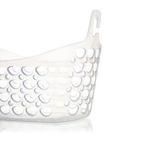 Cesto para prendedores com design clássico, flexível e inteligente. Observe o detalhe: cada alça fica virada para um lado, assim, nos ambientes externos e com muito vento, o cesto fica fixo no varal. Detalhe importante que é uma inovação. E, se é inovação, é Sanremo.