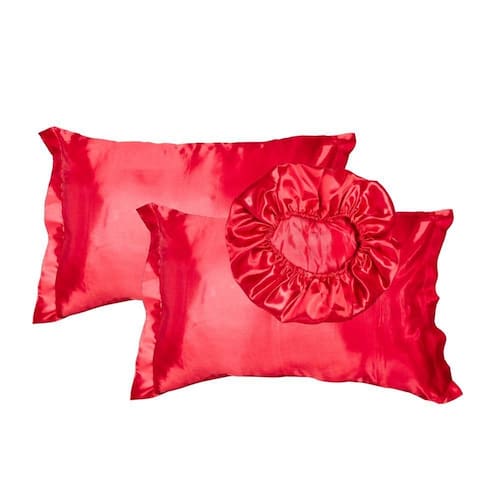 Kit Cetim Seda Luxo 2 Fronhas 1 Touca Antifrizz - Magic Enxovais Vermelho