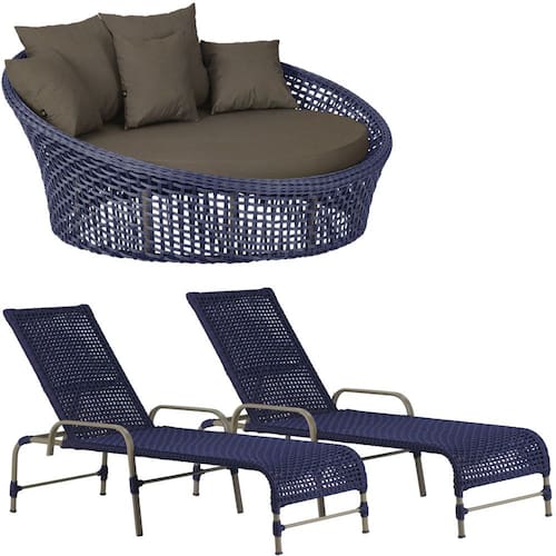 Kit Chaise Hungria e Espreguiçadeiras Catar Corda Náutica Alumínio Trama - Azul Royal