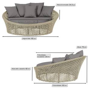 A trama artesanal em corda nautica adiciona um toque moderno e elegante, alem de proporcionar ibilidade e conforto inigualaveis. Para completar, o estofado em tecido impermeavel assegura pde e bem-estar em qualquer ambiente, seja na area externa ou interna. Eleve sua experiencia de descanso com um toque de sofisticacao. Garanta ja a sua!