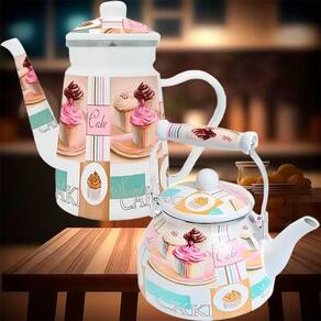 1 Chaleira Esmaltada Bico De Ganso Cake De 2,5 Litros;1 Bule Esmaltado Cake De 1,2 Litros;