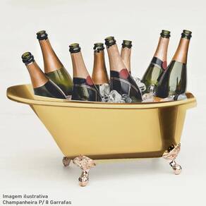 Eleve o glamour das suas celebrações com a nossa Champanheira tipo Banheira King! Com capacidade para até 12 garrafas, esta peça deslumbrante é o complemento perfeito para qualquer festa ou evento especial. Fabricada pela renomada marca Boccati, esta champanheira é feita de plástico de alta qualidade e apresenta um acabamento dourado luxuoso que certamente impressionará seus convidados. Mantenha suas bebidas geladas e sua festa brilhante com esta elegante champanheira. Adquira este kit agora e transforme seus momentos especiais em verdadeiras experiências de luxo.