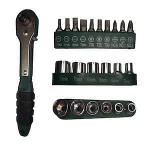 Kit chave catraca reversivel com canhao + soquete com 17 peçasref: f-206fabricantepen techvalidade: indeterminadatamanho aproximado da chave: 15cmtamanho aproximado da embalagem: a:19,5xl:11,5cmpeso aproximado: 215gcor: verde e pretocomposição: metal e plástico Ean: 7904390928384