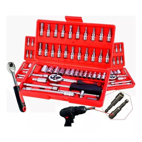 CaracterísticasAço Cromado Vanádio: Soquetes de alta qualidade 50 bv30 formados a frio, com torque 50% maior que o de aço carbono, acabamento liso e boa resistência à ferrugem.Materiais CR-V: Cabeça dos lotes com maior dureza e resistência.Chave de Catraca Reversível: Ajustável (positiva e negativa) com liberação rápida por botão de pressão, garantindo segurança e facilidade na troca dos soquetes.Catraca de 45 Dentes: Proporciona maior velocidade de operação.Uso Versátil: Ideal para manutenções em ar-condicionado, porcas de assento, para-choques, pneus, travas de portas de carro, bicicletas e mais.EspecificaçõesNúmero de Peças: 46Material da Maleta: TermoplásticoFerramentas: Aço cromo vanádioDimensões da Maleta: 24 x 13 x 5 cm (C x L x A)Peso: Aproximadamente 1,0 kgEncaixes: 1/4 padrão sextavadosLista de Embalagem13 Soquetes : 4 mm, 4,5 mm, 5 mm, 5,5 mm, 6 mm, 7 mm, 8 mm, 9 mm, 10 mm, 11 mm, 12 mm, 13 mm, 14 mm.21 Soquetes com Bits:Ponta Fenda: 4 mm, 5,5 mm, 7 mm.Ponta Hexagonal: 3 mm, 4 mm, 5 mm, 6 mm, 7 mm, 8 mm.Ponta Philips: 1, 2, 3.Ponta POZI: 1, 2, 3.Ponta Torx: T10, T15, T20, T25, T30, T40.03 Chaves Hexagonais L: 1,5 mm, 2 mm, 2,5 mm.01 Cabo Fixo .02 Extensões: 50 mm (2) e 100 mm (4).01 Extensão Flexível: 150 mm (6).01 Catraca Reversível com Quick Release: 15 x 2,7 x 2,3 cm.01 Cabo de Força T deslizante01 Junta Universal.01 Bit Adaptador.01 Maleta.Benefícios AdicionaisDurabilidade e Resistência: Feito para durar, com materiais de alta qualidade.Facilidade de Transporte e Armazenagem: Maleta prática e compacta.Versatilidade: Ferramentas úteis para diversas aplicações diárias.