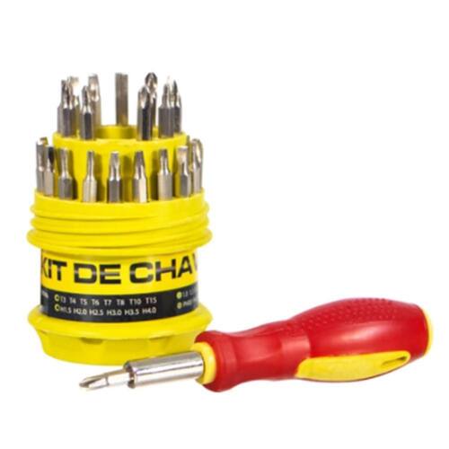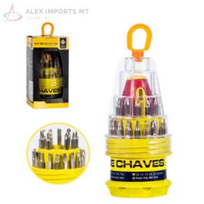 - Kit chaves de precisão com 30 pontas - composição: metal, plástico e borracha - marca: house tools - referência: bs156-xc424 Características: - kit de chaves com 30 pontas super resistentes; - prático estojo com mini alça; - cabo de 9,4cm com acabamento emborrachado Conteúdo da embalagem: - 1 cabo emborrachado - 30 pontas - 01 estojo Ean: 8000011631011