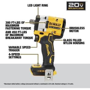 Obtenha até 300 pés-lbs de torque máximo de fixação e 450 pés-lbs de torque máximo de desaperto com esta ferramenta elétrica compacta que oferece fácil manobrabilidade sem sacrificar a potência.