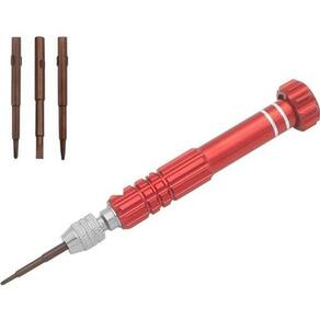 Kit Chave Ponteira Relojoeiro Ourives Joalheiro Relojoaria 01 Chave base + 04 Ponteiras - Ponteiras: 02 Philips 1,6 e 2,0 mm e 02 Fendas 1,4 e 1,8 mm - O cabo da chave de fenda é feito de liga de alumínio puro, bonito e atraente; - Superfícies antiderrapantes na superfície e a tampa rotativa tornam a operação confortável e vmelhoram a eficiência do trabalho; - Feito de material premium, durável e de alta precisão. - Cores: serão enviadas as disponíveis em nosso estoque; - As ferramentas profissionais destinam-se a serem eficientes em aparelhos eletrônicos; - Adequado para reparar telefones celulares, PDAs, PCs e outros dispositivos eletrônicos. - Material: liga de alumínio - Comprimento: cerca de 12 cm - O pacote inclui: 1 base e mais 04 ponteiras. mostradas nas fotos deste anúncio Marca: Terceiros